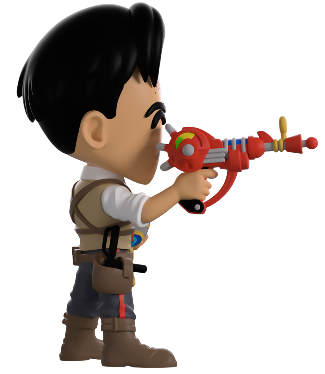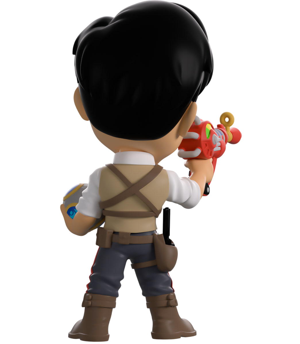 | Edward Richtofen has followed all the clues and this new mystery has led him straight to Youtooz for his debut! Standing at 4.5 inches tall and holding a bright red Raygun forward in his raised right arm, the left clutches the summoning key as a stern look crosses his bloody face and a thin grey moustache sits underneath furrowed brows. Looking both smart and ready for whatever may come his way, he wears a beige vest over a white shirt with rolled-up sleeves with striped pants and thick brown boots as straps run over his chest and a pouch sits on his hip. The exterior of his packaging shows Edward standing in a bright spark of red and orange energy, while the interior is pitch black and covered in a vibrant red blood spray. The protective sleeve sees a beaten-up wood panelling with red notches marked in it as their figure can be seen through the large clear window at the packaging’s front. This collectible ships in a matte, embossed, protective outer sleeve and a custom-sized plastic protector for maximum protection during shipping. |