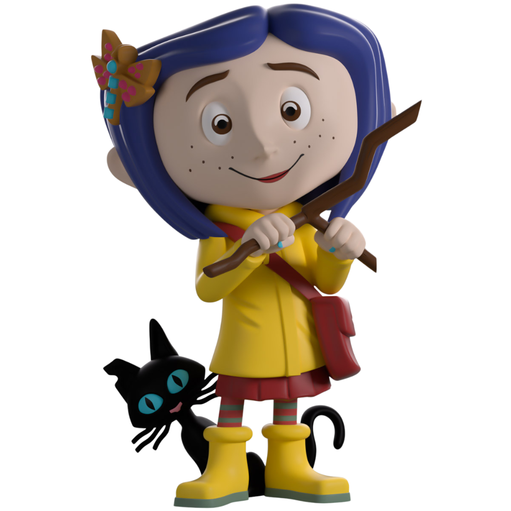 “Cripes almighty!” Coraline has ventured into the Other world of Youtooz for her vinyl debut! Standing at 4.5 inches tall and holding a wooden dowsing rod to her front in hopes of finding water, an endearing smile crosses her freckled face as shoulder-length blue hair parts in the middle with a dragonfly clip sitting on the right side. Always dressed ready for an adventure, she wears a bright yellow raincoat over a pink dress along with matching gumboots and striped socks as an inquisitive black cat sticks its head around from her side. The exterior of her packaging sees Coraline and the cat going for a stroke in front of a full moon, while the blue interior is covered in white stars. The protective sleeve is then pitch black with white stitching running around it as her figure can be seen through the large clear window at the packaging’s front. This collectible ships in a matte, embossed, protective outer sleeve and a custom-sized plastic protector for maximum protection during shipping. |