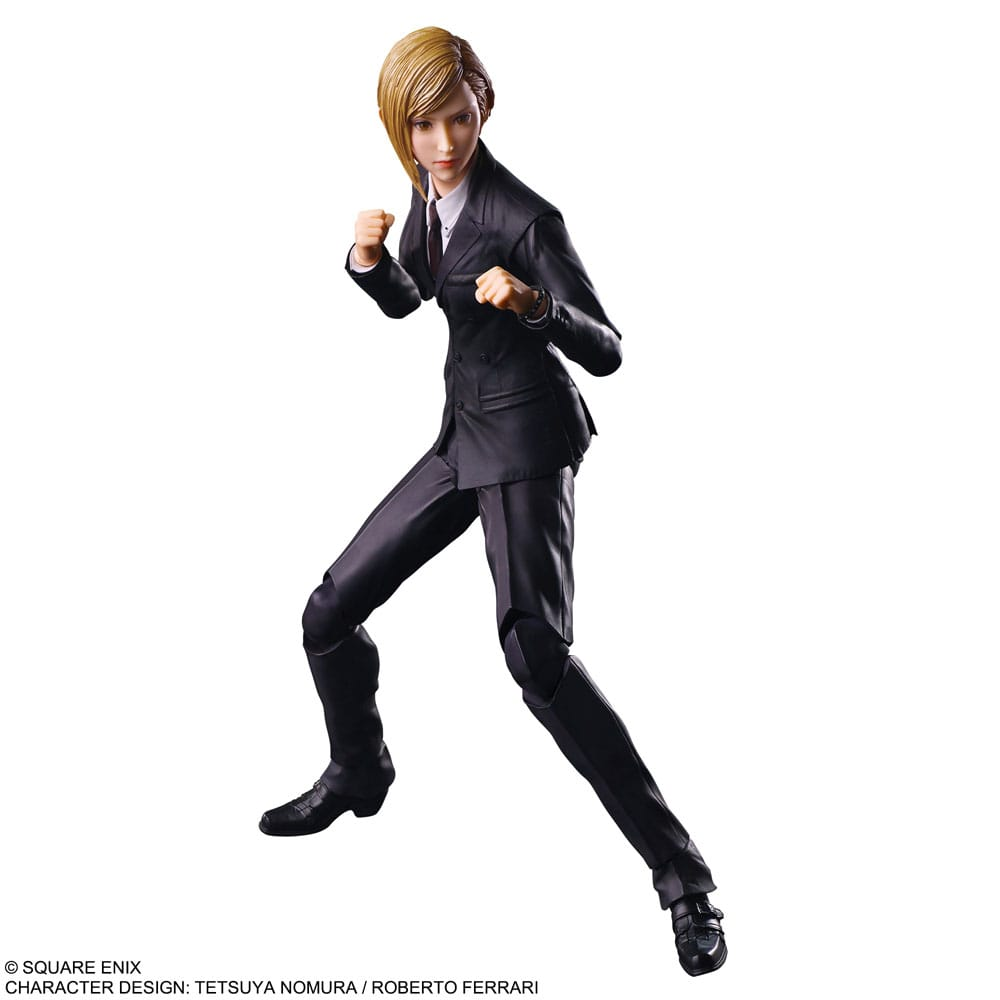 FINAL FANTASY VII REBIRTH PLAY ARTS KAI Action Figure - ELENA Elena, the newest member of the Turks, Shinra Company's elite unit, joins the FINAL FANTASY VII REBIRTH PLAY ARTS KAI lineup! Her light golden brown short hair, eager eyes, fair skin, seamlessly fitted suit have all been recreated to bring her figure to life. Details such as the necktie, boot texture, fine patterns on the suit and movement of the fabric creases have been carefully reproduced, and a wider degree of posability has been achieved, allowing a variety of poses including those for action scenes. Accessories include face parts with a different smiling expression, various interchangeable hands, a handgun, grenade, and a popsicle. |