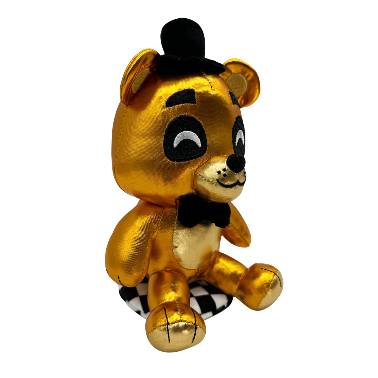 | Prepare to be blinded by Golden Freddy’s absolute shining return to Youtooz! Sitting at 6 inches tall with the most adorable smile on his small muzzle as bright white pupils shine out from dark eyes and a pair of round ears stick out from the top of his head, he wears a short black top hat that matches the bow around his neck as his body shines with a brilliant dazzling gold! This plushie is made of minky and golden materials, is packed to the seams with the most huggable squishy 100% PP cotton and comes equipped with a magnetic disc to let it perch firmly atop your shoulder as the best accessory and a true testament to your love of the fandom! |