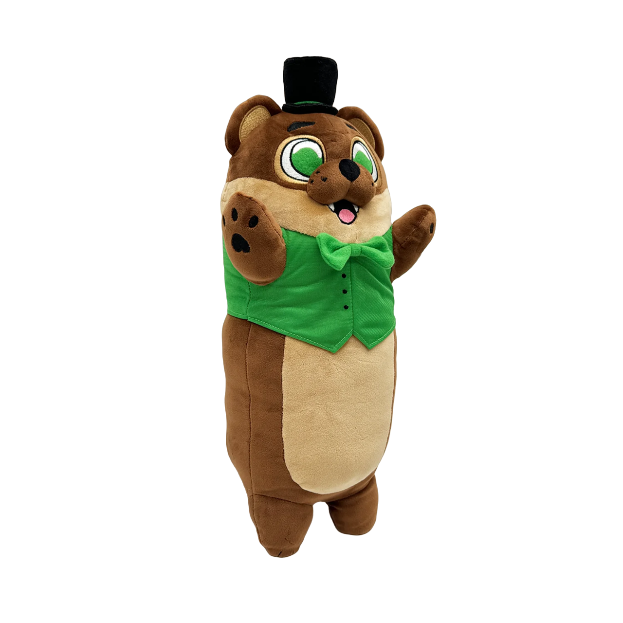 Popgoes? More like Pop-goes-on and on and on! Stretched out at a whopping 16 inches long with his front paws raised up adorably and a toothy smile simply beaming from his brown muzzle, his green pupils glow from the darkness of his black eyes as all he wants is a big hug! Wearing a stylish back top hat, green vest and bowtie, his stomach is a light brown that runs down his long body and ends just before his short hind legs and tail. This plush is packed to the seams with 100% PP cotton and made of a soft teddy material, absolutely perfect for cuddling or helping you get a high score in the arcade! |