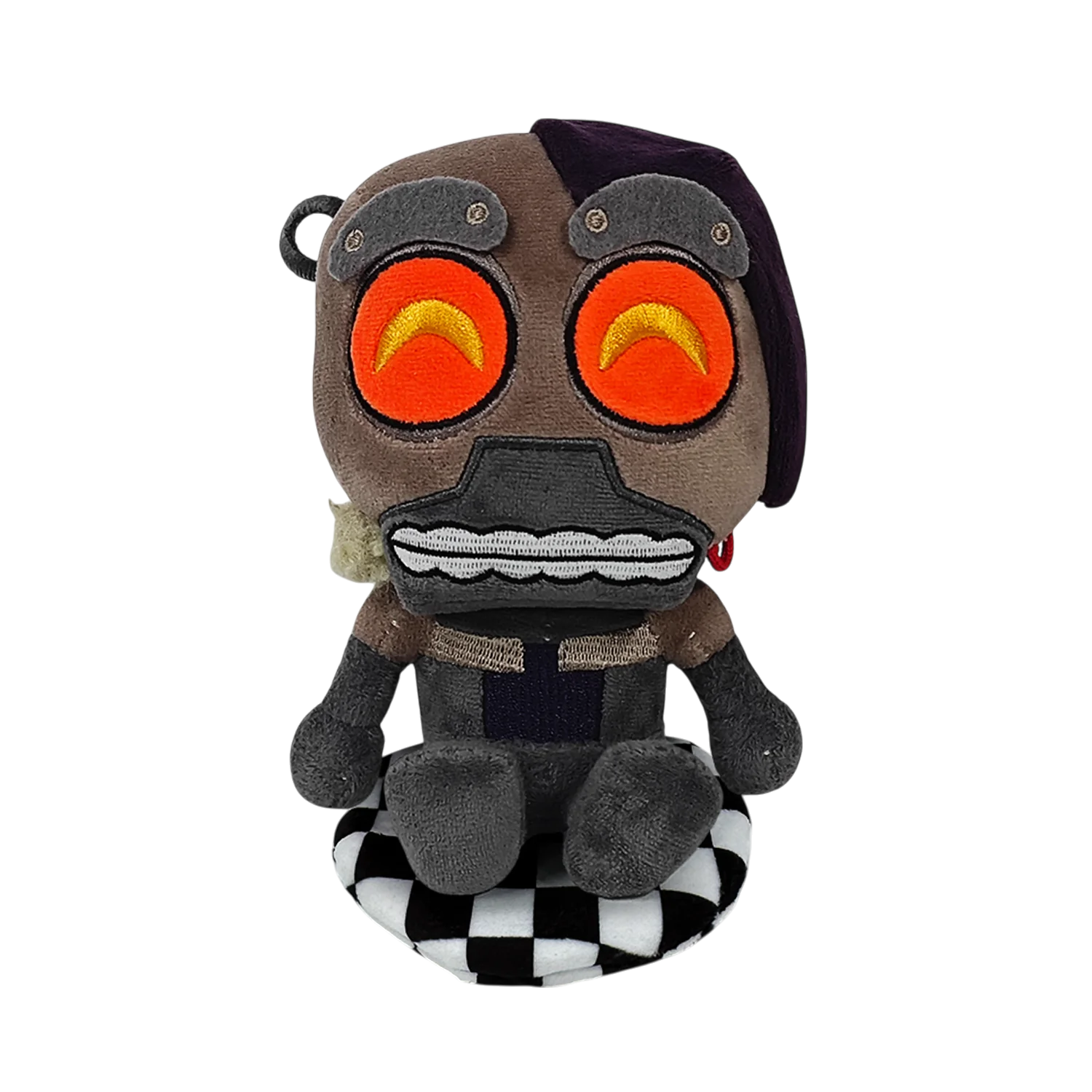 | Cute? Yes. Adorable?? Double Yes! Slightly terrifying?!... Maybe just a little… At 6 inches tall with a pair of orange and yellow eyes shining out from under thick brows and a cloth draped over the left side of their head as a thick wire curls around the right, a puff of stuffing sits at the side of clenched teeth as their grey body sits with legs kicked forward. This plushie is made of the softest minky material with accents of sherpa and felt, is packed to the seams with the most huggable squishy 100% PP cotton and comes equipped with a magnetic disc to let it perch firmly atop your shoulder as the best accessory and a true testament to your love of the fandom! |