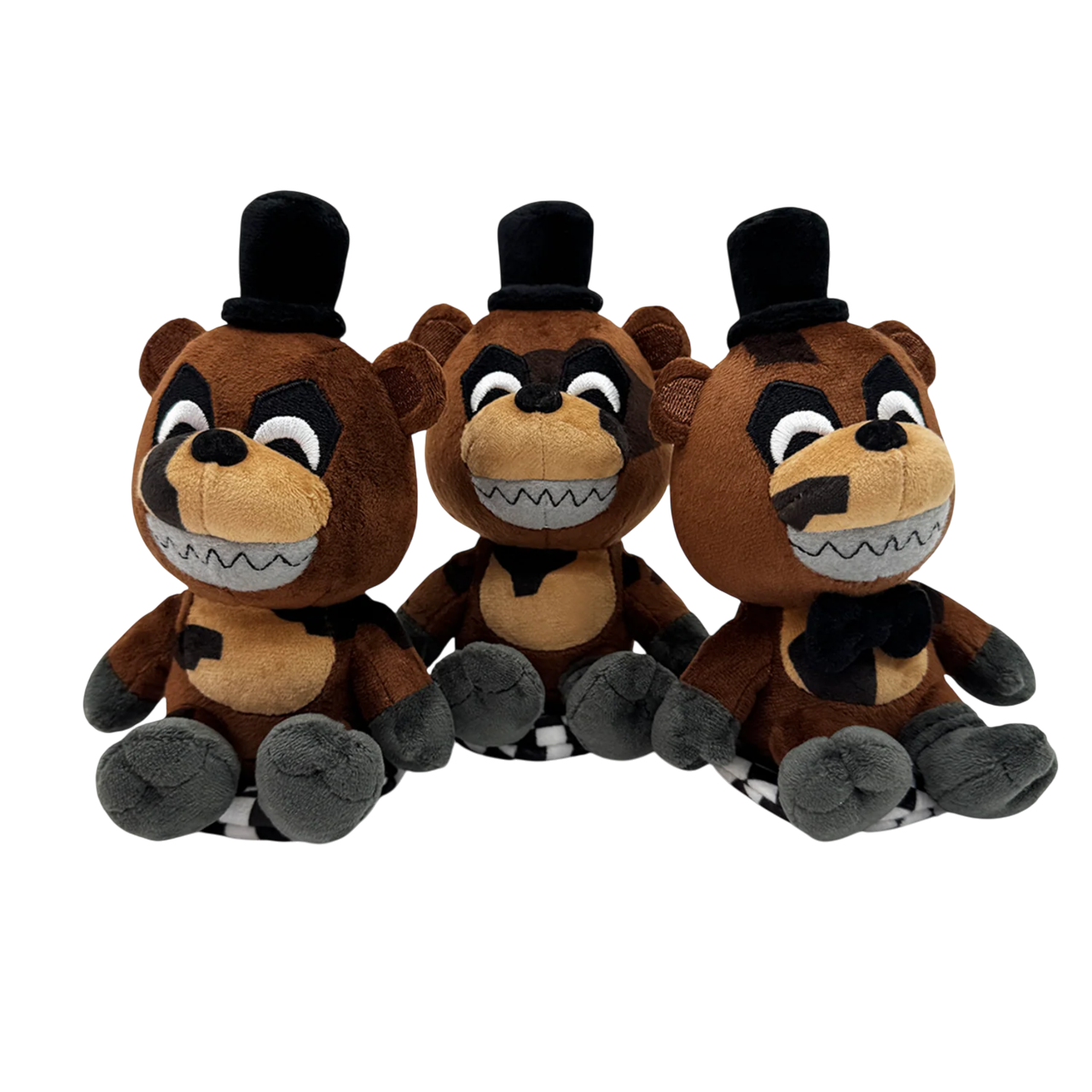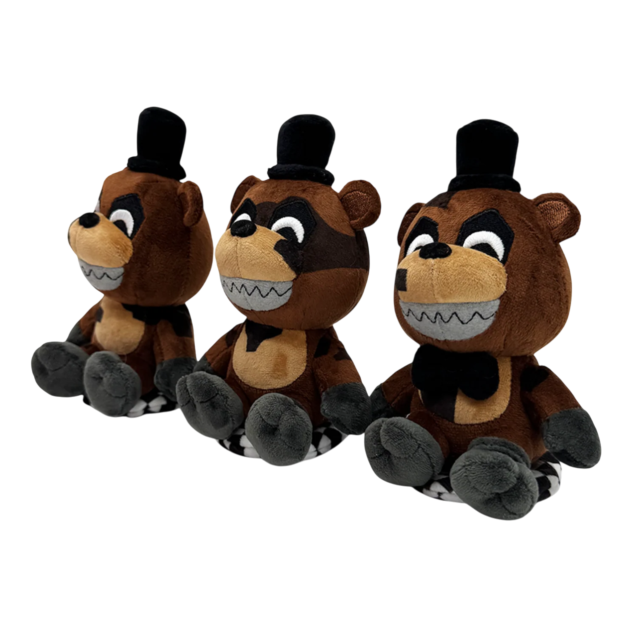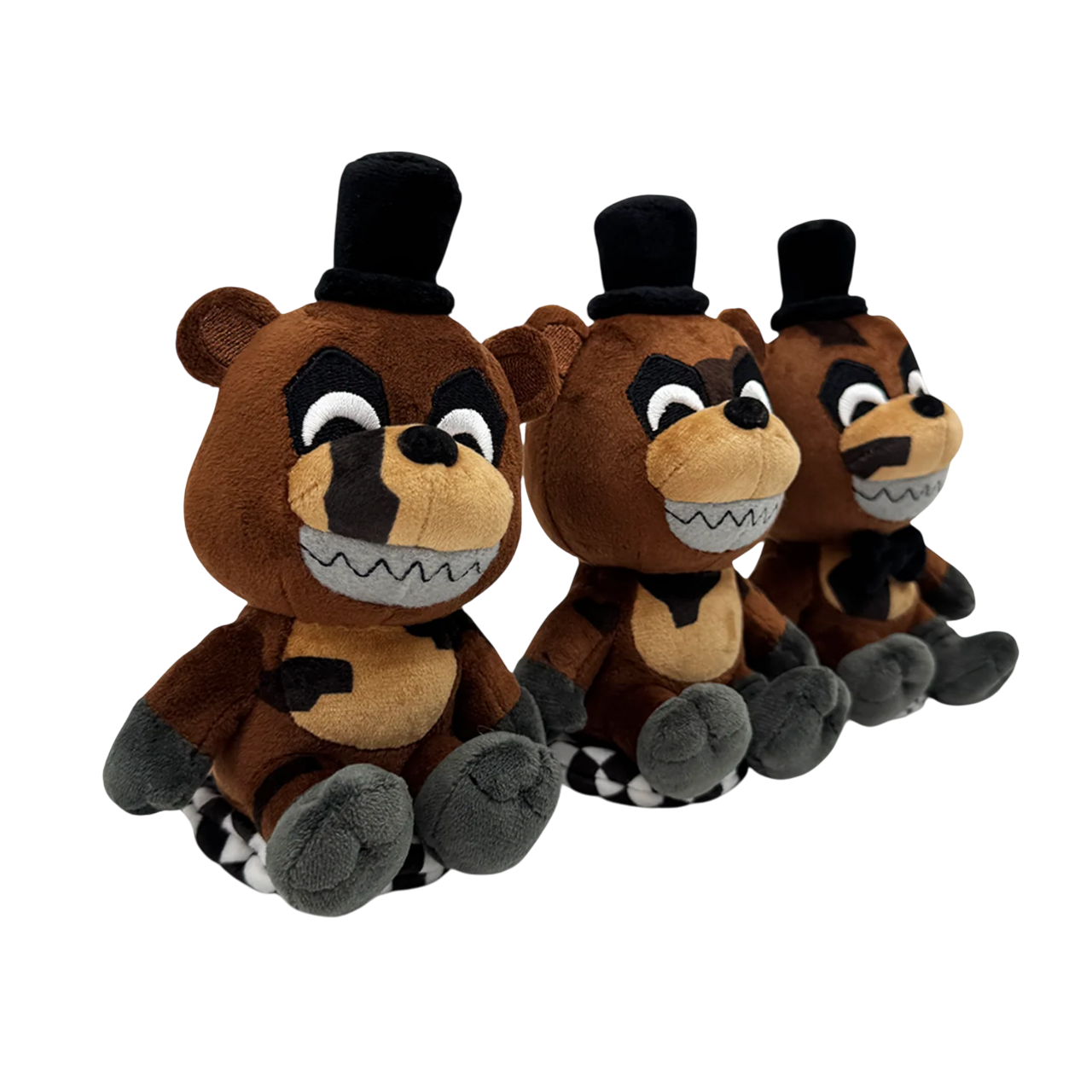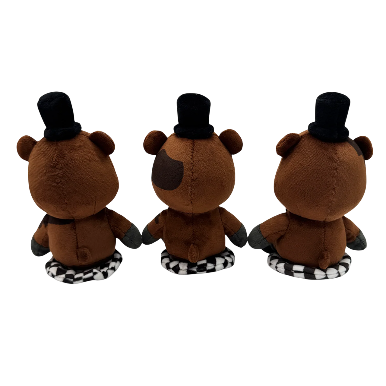 | The Freddles have landed back at Youtooz for mischief galore! Sitting at 4 inches tall, the trio of troublemakers have sharp, toothy smiles and glowing white pupils as they each wear a small black tophat, and their brown bodies fall away to reveal grey endoskeletons. These plushies are made of the softest minky materials, are packed to the seams with the most huggable squishy 100% PP cotton and come equipped with magnetic discs to let them perch firmly atop your shoulder as the best accessories and a true testament to your love of the fandom! |