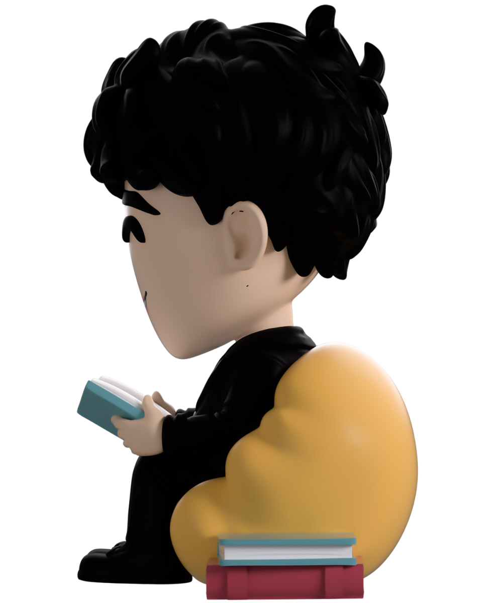 | Charlie had only read about returning to Youtooz, but little did he know we were going to make it a reality! Enjoying all the delights a good book brings, he sits at 4.4 inches tall nestled in the comfiest yellow bean bag with a huge smile stretching across his face as he gazes down at the book in his hands. With a mop of messy black hair flicking up and wearing a smart school uniform of black pants and a blazer over his vest, white shirt and tie, stacks of colorful books sit at his sides ready to be snatched up next! The exterior of his packaging sees the interior of a tidy bedroom, while the interior is pale blue and orange with multicolored leaves drifting across it. The protective sleeve is then covered in a white brick pattern covered in blue graffiti as his figure can be seen through the large clear window at the packaging’s front. This collectible ships in a matte, embossed, protective outer sleeve and a custom-sized plastic protector for maximum protection during shipping. |