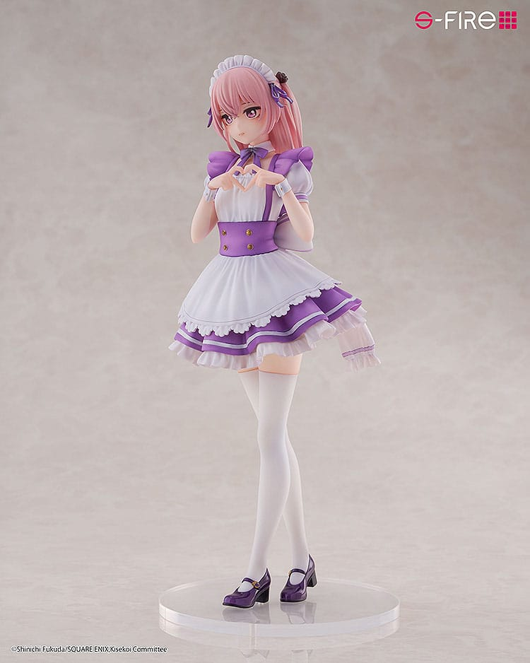 | "From the TV anime My Dress-Up Darling, the character Sajuna Inui has been made into a figure with an original maid outfit design by S-FIRE. The figure captures Sajuna's typical expression, "heart" pose, the delicate frills on her apron, and glossy shoes, all rendered with the unique sculpting and coloring that S-FIRE is known for, expressing texture and shading beautifully. You can also display her alongside other characters from the same series, Marin and Shinju." |