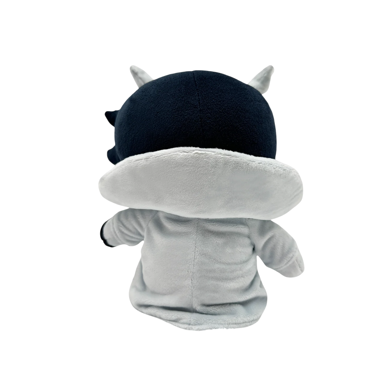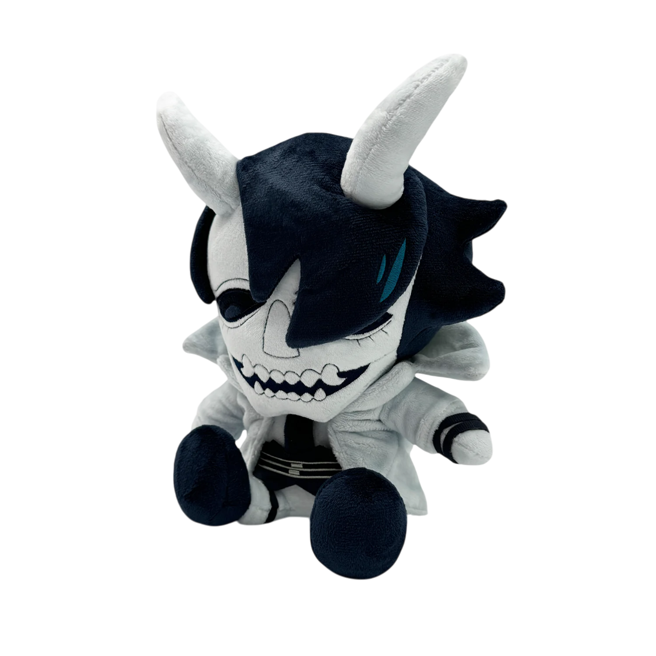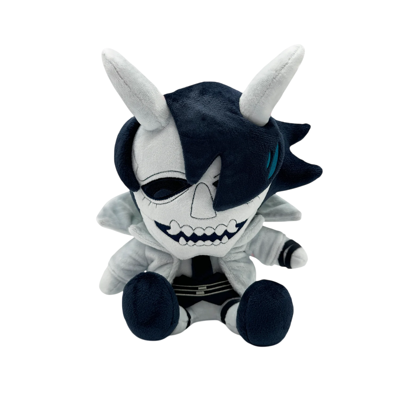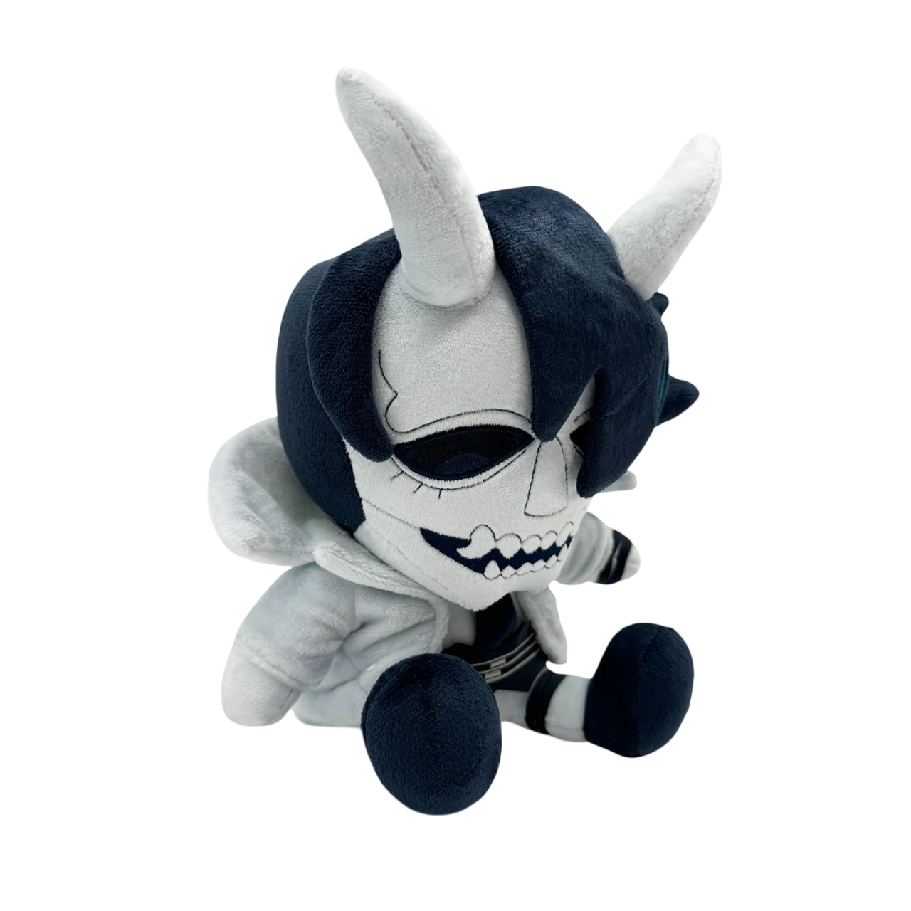 | Come meet our new demon, on loan from hell, this Neon is ready for a fight! We have teamed up with Neon White to bring one of their Neons into plush form! Sitting at 9-inches tall, this masked demon is dressed for success. He is seated with his feet forward and is wearing black shoes with white and black striped pants. He has a long white trench coat and white shirt, with a black waist cincher and tie. His angular white demon mask is framed by a popped collar and his quaffed black hair. Two long horns extend from the top of the mask. This plush is packed to the seams with 100% PP cotton and is made of a mix of the softest minky material, perfect for cuddling or killing demons with! |