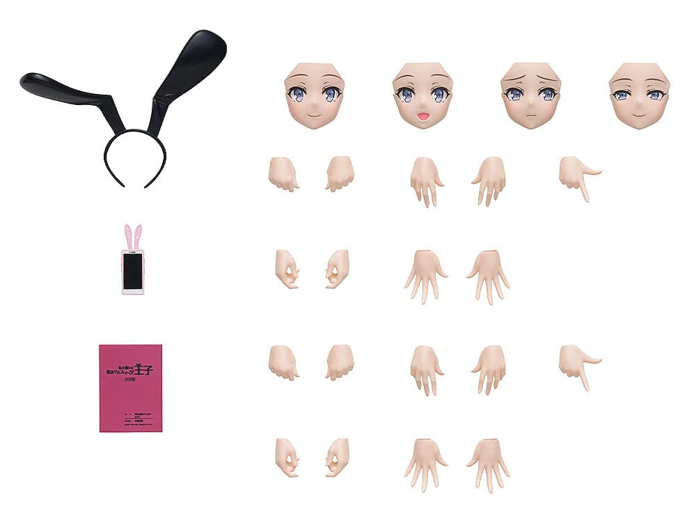 Product Contents - 1 x Bunny costume body - 1 x Summer uniform body - 4 x Facial expression parts types - 5 x Hand parts types - 5 x Summer uniform hand parts types - 1 x Bunny ear headband (for holding) - 1 x Smartphone - 1 x Script - 1 x Display pedestal (Large) ·Display pedestal (Small) |