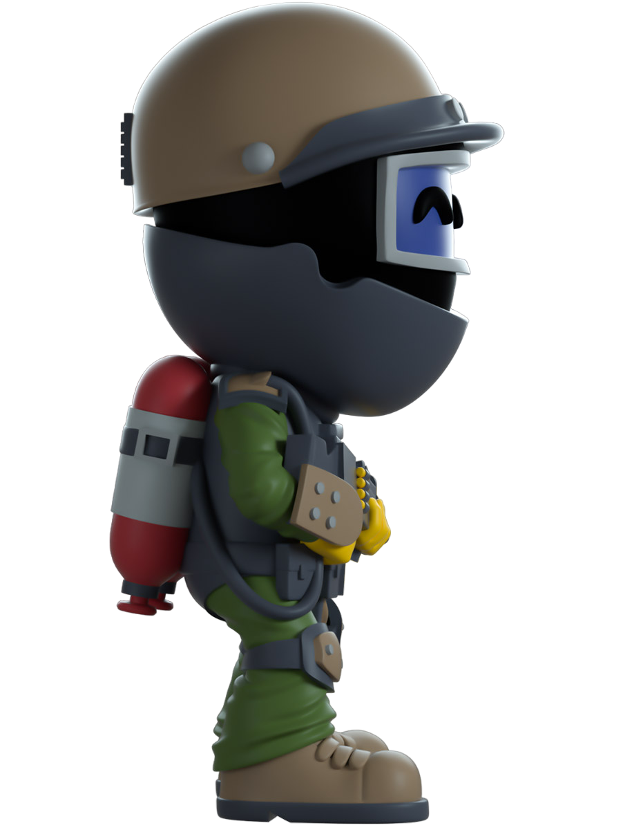 | Blasting his way into Youtooz to stand at 4.6 inches tall, he grasps a long grey heavy machine gun at the ready in his yellow gloved hands as his eyes can be seen through the blue visor of his armored face that has a tall grey collar rising up over the bottom of his head and a sturdy brown helmet. With the dark grey and brown protective plating of his EOD suit sitting over a green jumpsuit, two large red canisters are attached to his back as he wears ammo pouches around his waist and brown boots.The exterior of his packaging sees an oil refinery jutting out of the sea, illuminated by a setting sun. While the interior is a repeating pattern of the ‘Rust’ logo over a brown background, the protective sleeve is a serene forest scape under a low sun and displays his figure through the large clear plastic window at its front. This collectible was designed in collaboration with the community member @therealracckun, ships in a matte, embossed, protective outer sleeve and a custom sized plastic protector for maximum protection during shipping. |