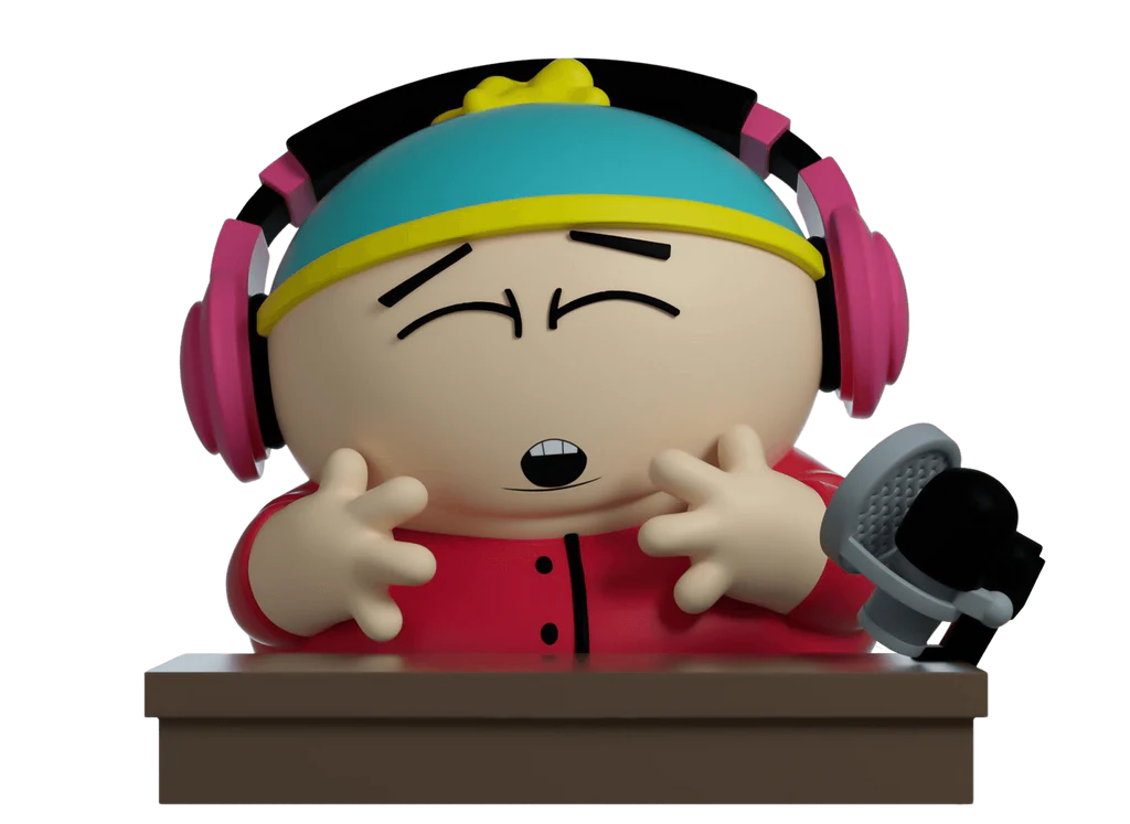 CARTMANBRAAAH!! Cartman arrives at Youtooz, sitting behind his desk at 3.4 inches. He is dressed in his yellow and blue hat with his red jacket, both of his hands on his face. He has his mic situated on the left side of his desk as he also wears a hot pink headset on his head. The exterior of his double-walled window box shows the inside of Cartman's bedroom with his desk and computer in frame. The interior is the South Park logo repeating on a grayscale pattern. The protective sleeve shows Cartman, Stan, Kenny, and Kyle peeking in from the corners on top of a black background. This collectible ships in a matte, embossed, protective outer sleeve and a custom sized plastic protector for maximum protection during shipping. |