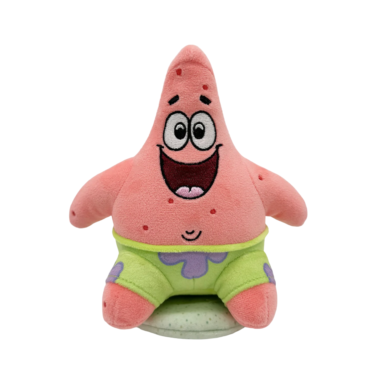 | Patrick’s back at Youtooz to be the other angel on your shoulder, because let’s face it, there isn’t an evil bone in him! Sitting at 5.5 inches tall with the biggest smile sitting underneath beaming white eyes and raised eyebrows, his chunky arms rest against the sides of his round body as short legs poke out from vibrant green and purple patterned shorts. This plushie is made of the softest minky material, is packed to the seams with the most huggable squishy 100% PP cotton and comes equipped with a magnetic disc to let it perch firmly atop your shoulder as the best accessory and a true testament to your love of the fandom! |